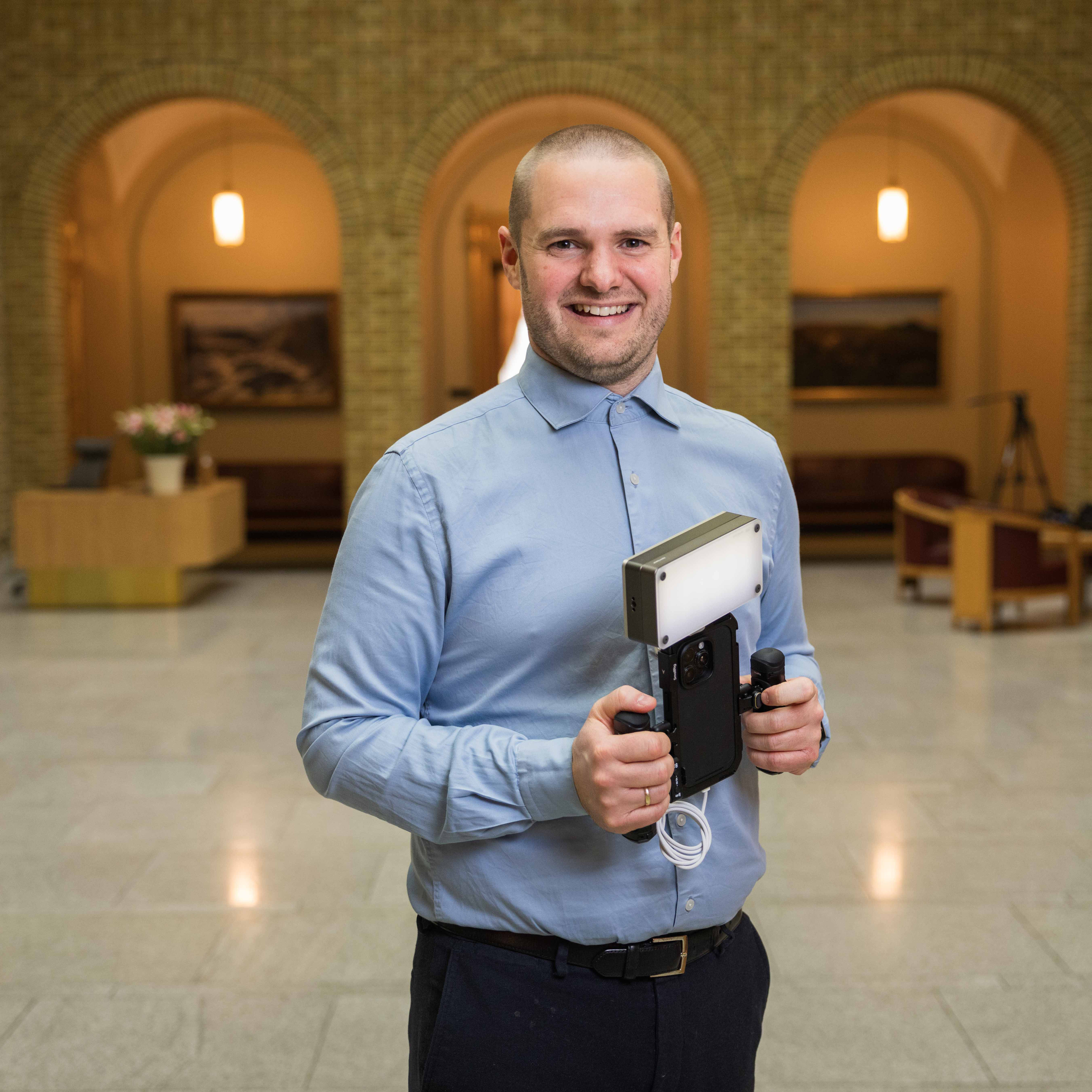 Jeg har en master i politisk kommunikasjon, så for meg er denne jobben en skikkelig drømmejobb. Tidligere har jeg jobbet som journalist og som kommunikasjonsrådgiver i ulike organisasjoner. Ellers er jeg en enkel gutt fra Indre Østfold som alltid har vært glad i politikk. Jeg var nok ikke den kuleste på videregående, for jeg husker at i midttimen pleide jeg å følge med på Stortingets spørretime. Jeg husker også at et av de første minnene fra livet mitt var kabinettsspørsmålet og regjeringsskiftet i 2000. Da var jeg 10 år gammel.