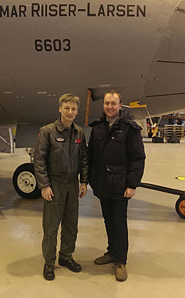 Eirik Sivertsen sammen med skvadronssjef Bjørn Gohn-Hellum ved 333-skvadronen.