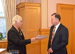Utvalgsleder Eldbjørg Løwer overleverte den særskilte meldingen til stortingspresident Olemic Thommessen.