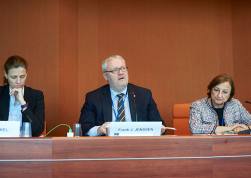 Det har så langt vært ei travel veke for den norske delegasjonen. Frank Jenssen (H) deltok mandag på eit informasjonsarrangement om Europarådets nye konvensjon om manipulering av idrettskonkurransar. I sitt innlegg la Jenssen vekt på at idretten ikkje kan ta denne kampen aleine og at nasjonalt og internasjonalt samarbeid er avgjerande for å komme dette til livs.