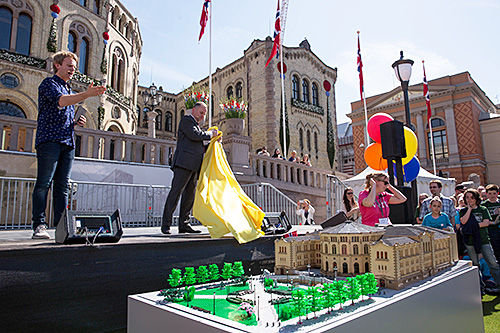 Et av høydepunktene under arrangementet var avdukingen av stortingsbygningen i LEGO-utgave.