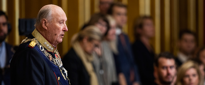 H.M. Kong Harald V under åpningen av det 163. storting. Foto: Stortinget.