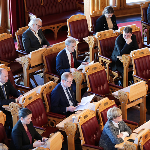 Fra stortingsmøtet 21. mars 2020. Foto: Stortinget.
