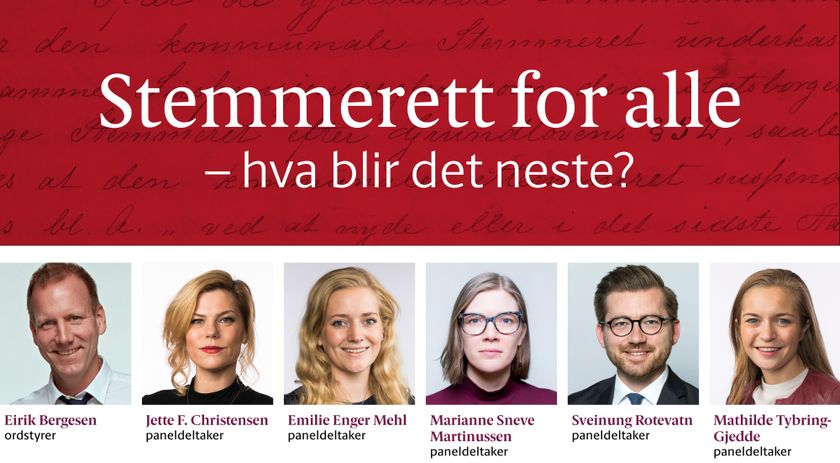 Retten til å stemme ble kjempet frem gjennom lang kamp, og i år feirer vi 100 år med stemmerett for alle. Men hva betyr stemmerett for alle i dag? Hvor finner vi de demokratiske manglene i vår tid? Hva er neste nødvendige stemmerettsreform?