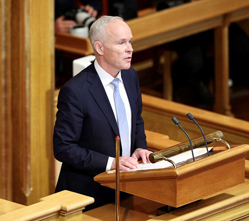 Finansminister Jan Tore Sanner holder finanstalen i Stortinget 7. oktober 2020. Foto: Stortinget.