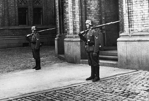 Tyske soldater utenfor Stortingets hovedinngang. foto: Stortinget.