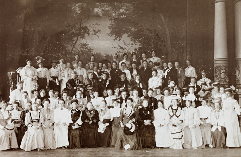 Landskvindestemmeretsforeningen under et møte på Lillehammer, år ukjent. Nasjonalbiblioteket.