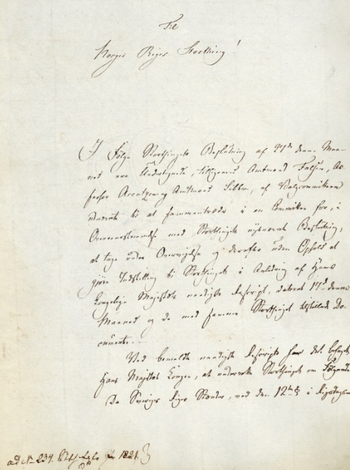 Kongelig reskript 17. mars 1821 vedlagt oberst Gustaf A. Gustafsons søknad om naturalisering. Foto: Stortingsarkivet