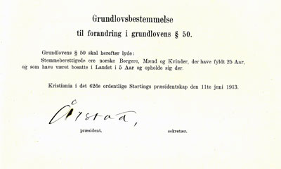 Stemmerettskampen preget Stortinget i en årrekke, fra det første forslaget ble behandlet i 1890 og helt frem til 1913, da et enstemmig storting vedtok at kvinner skulle ha stemmerett på lik linje med menn.