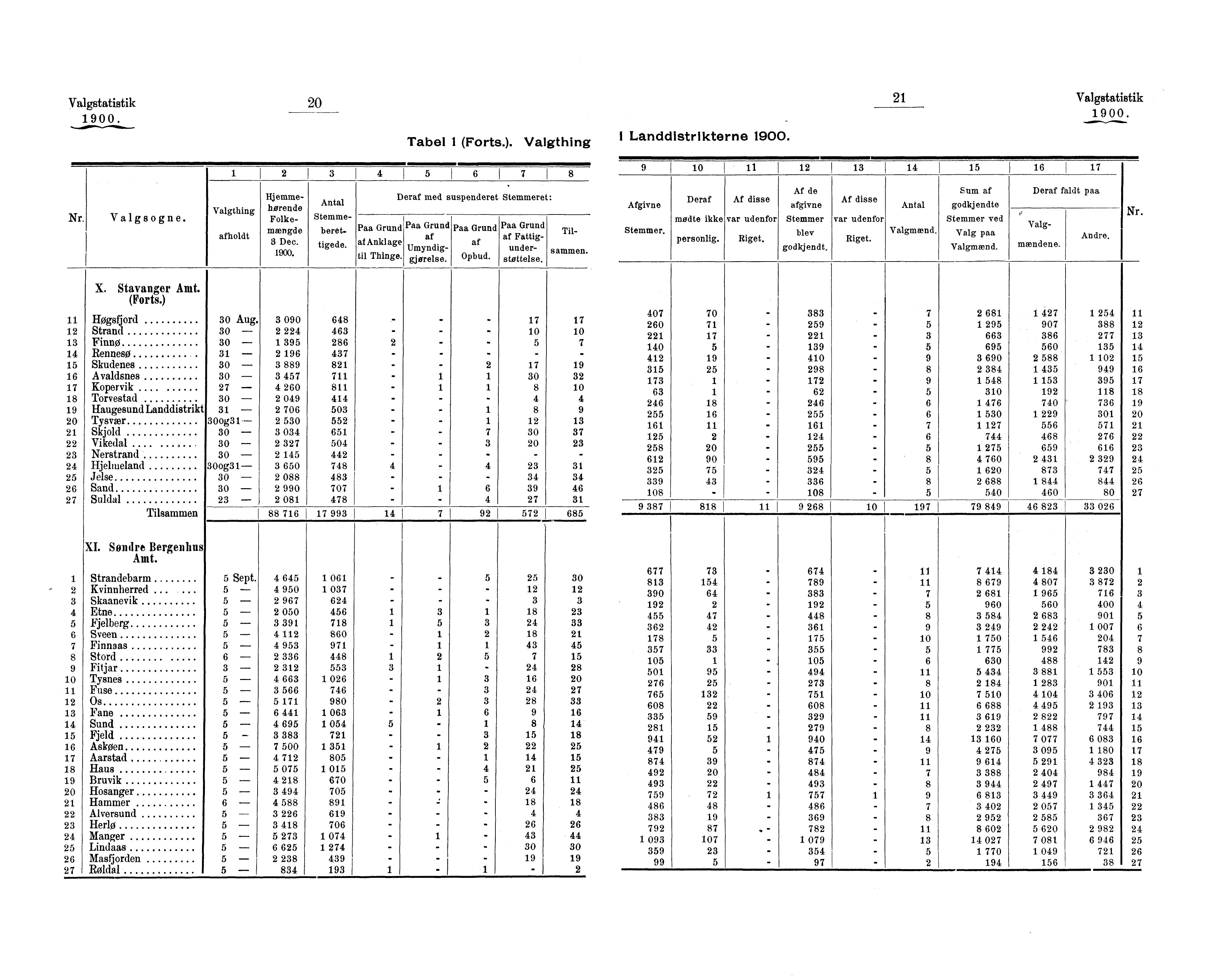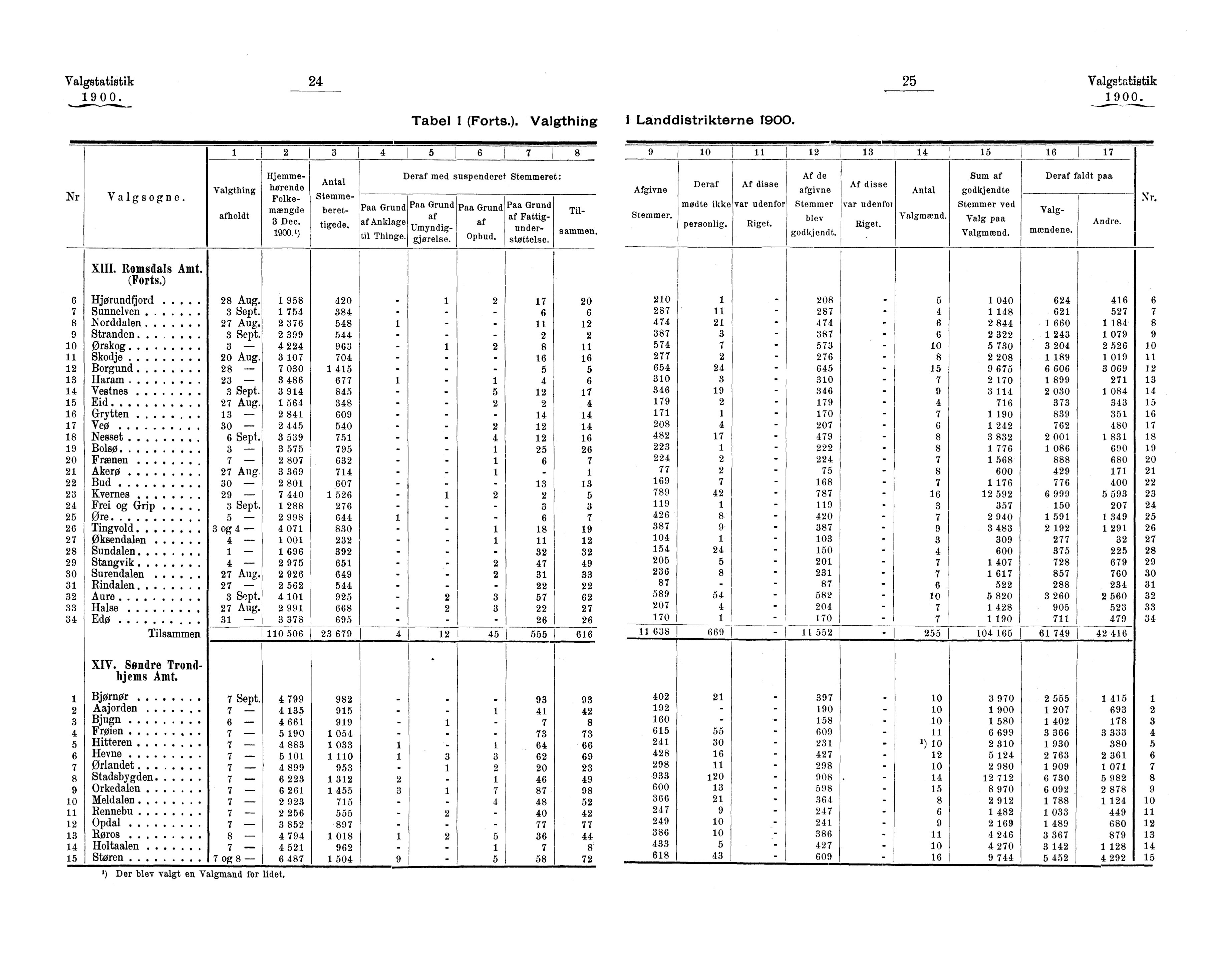 Valgstatistikk fordelt på valgdistrikter i stortingsvalget i 1900.