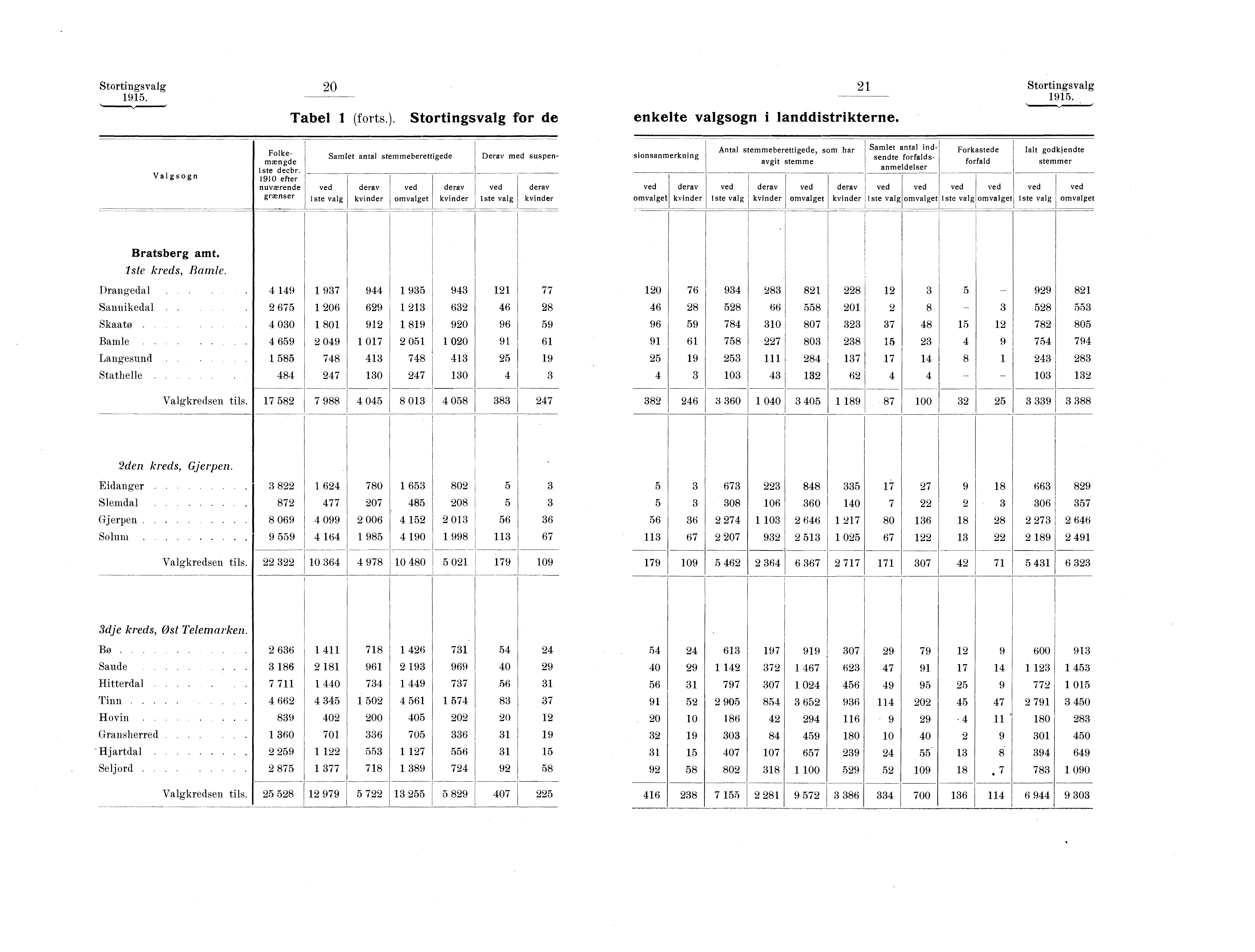 Valgstatistikk fordelt på valgdistrikter for stortingsvalget i 1915.